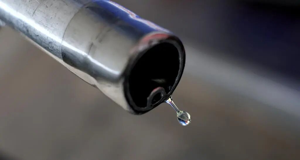 3月26日,在英国伦敦一处加油站,汽油从油枪口滴落。受美国和以色列与伊朗军事冲突影响,英国加油站燃油价格持续走高。新华社记者李颖摄