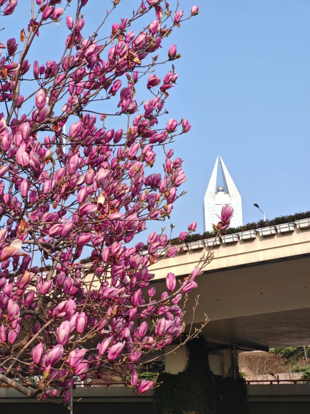玉兰和城市地标交相呼应@Hashiko