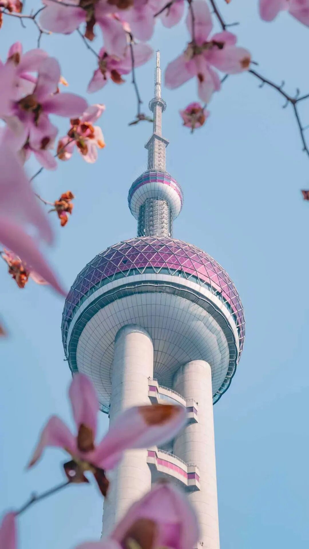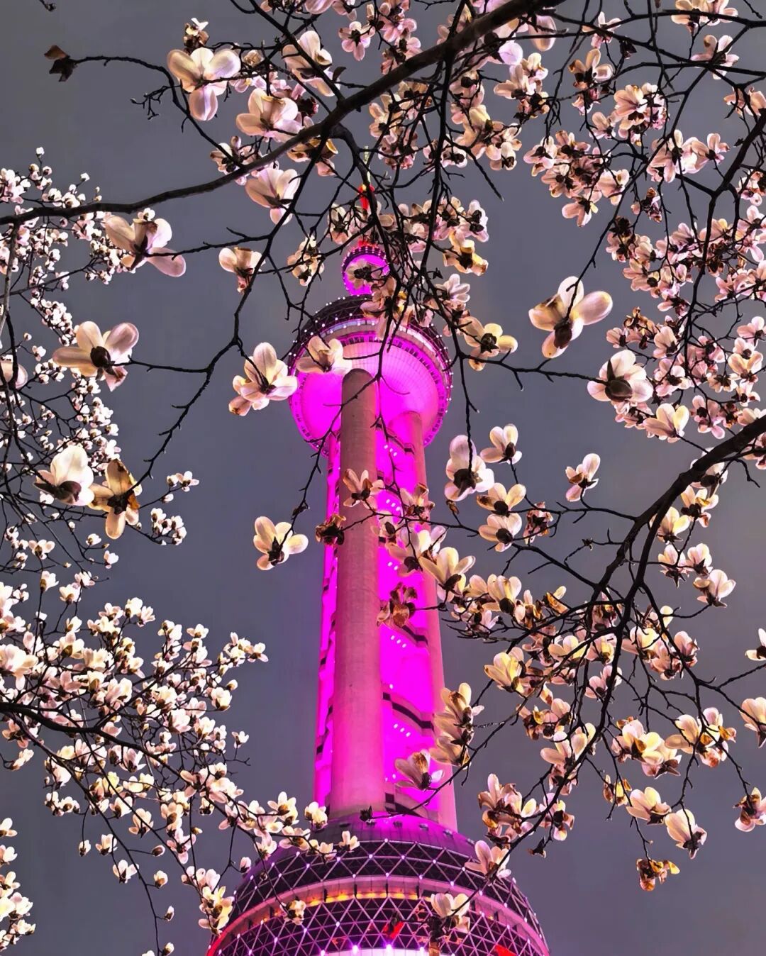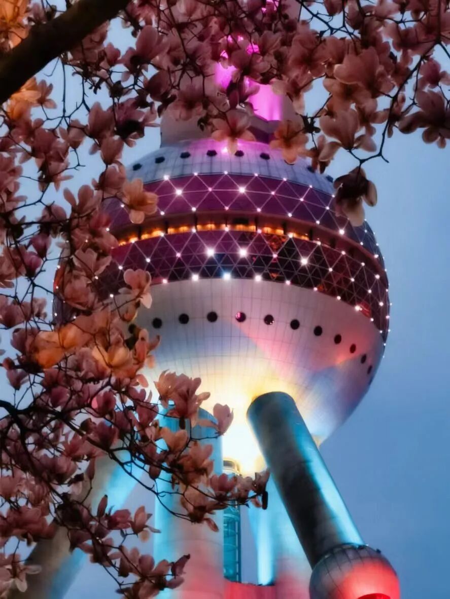 东方明珠下的粉玉兰@阿琪