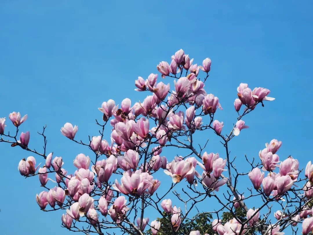 玉兰绽放,粉的似霞@许英