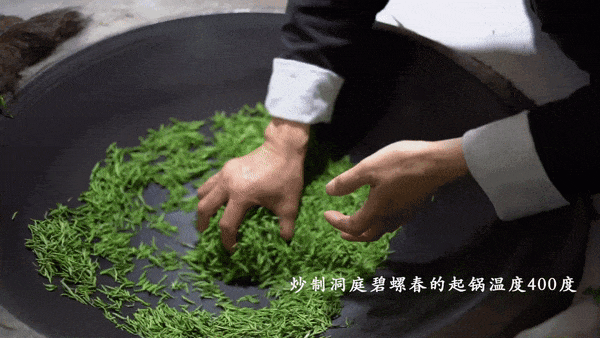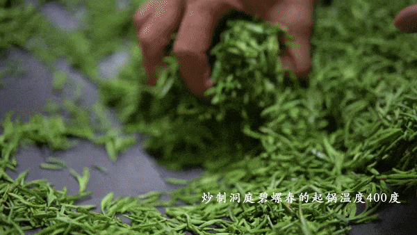 第一道工艺就是茶在锅上转,叫盘龙走蛇。当每一颗芽和小小的叶子都起毫,叫百鸟归巢。炒制工艺非常讲究,300多度的高温下要甩得开,抖得匀。揉捻要翻滚,搓团要像团子一样圆。